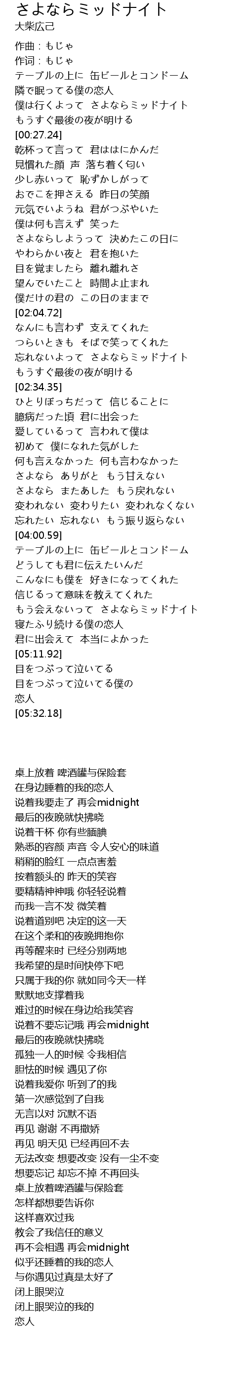 | [02:20.97] | 说着不要忘记哦 再会midnight |