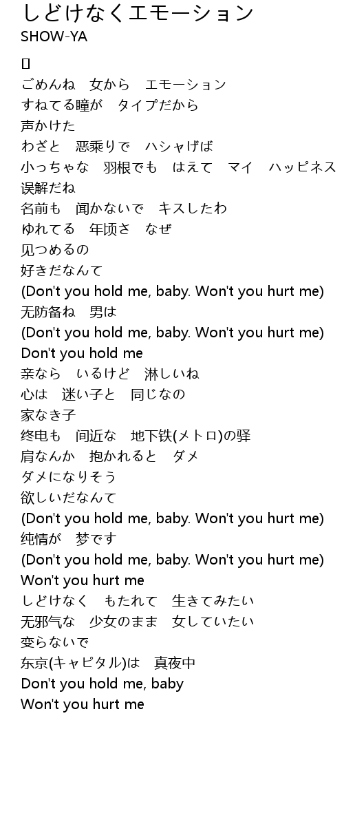 | Don' t you hold me, baby. Won' t you hurt me | |