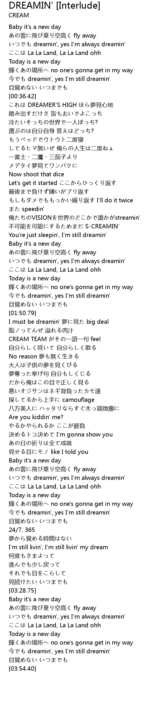 | [03:34.85] | いつでも dreamin', yes I'm always dreamin' |
