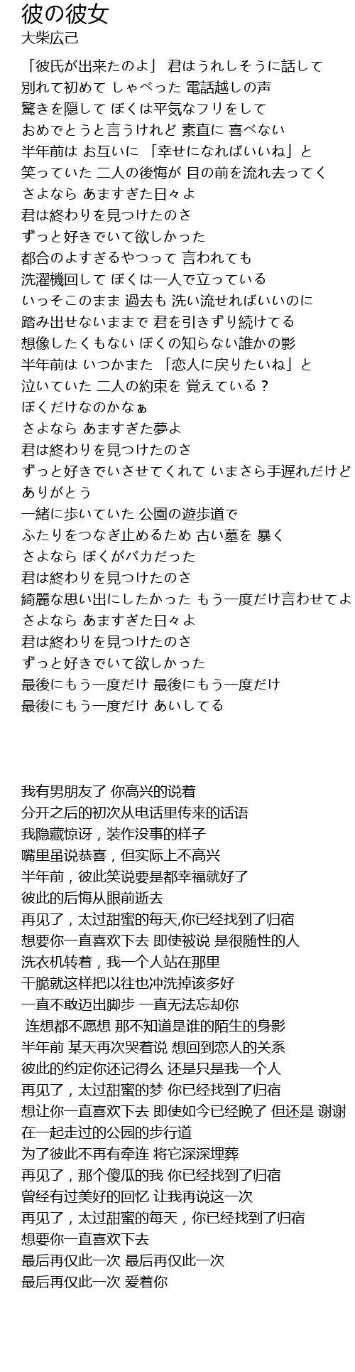 | [02:33.21] | 半年前 某天再次哭着说 想回到恋人的关系 |