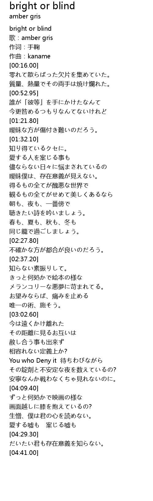 | [00:00.00] | bright or blind |