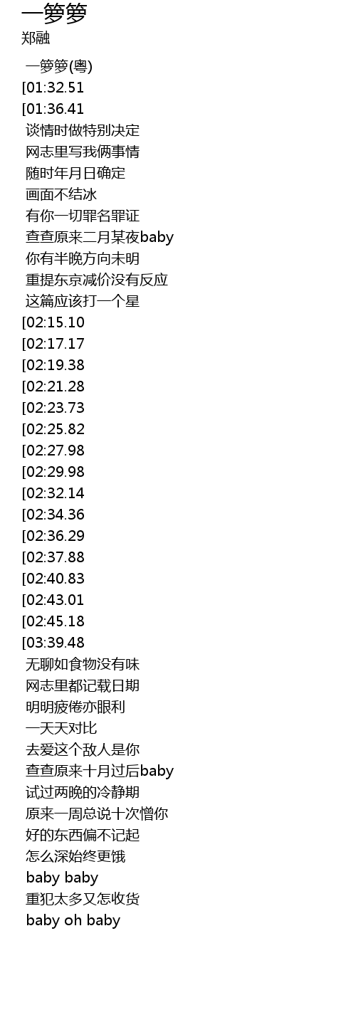 | [00:16.00][01:32.51][03:42.71] | 郑融-一箩箩(粤) |