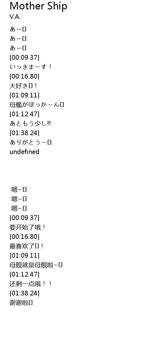 | [01:11.25] | 母舰就是母舰啦~♪ |