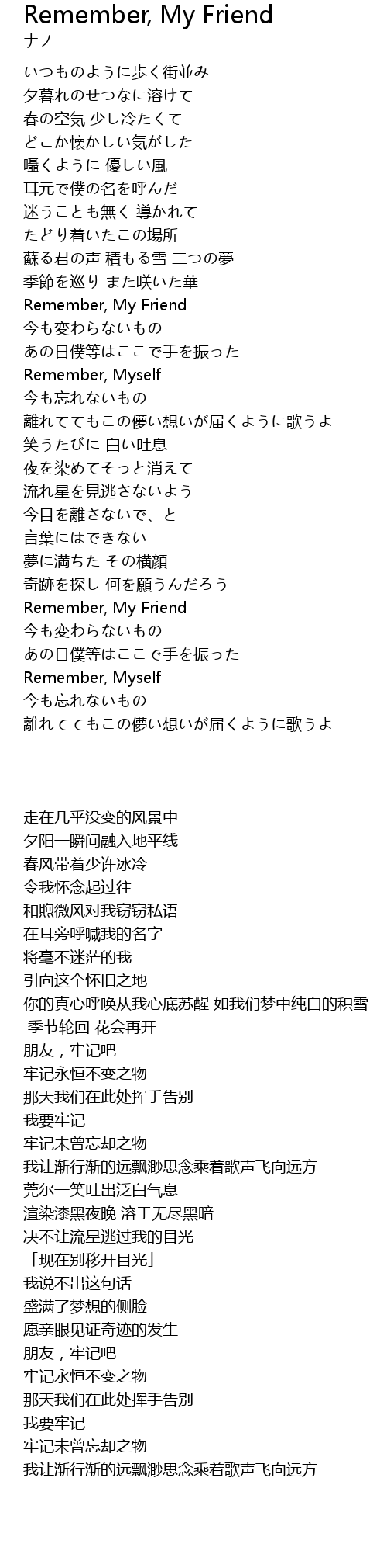 | [04:04.21] | Remember, My Friend |