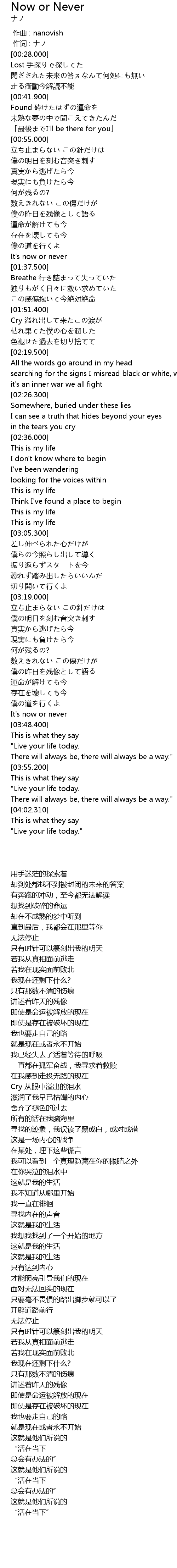 | [00:01.00] | 作词 : ナノ |