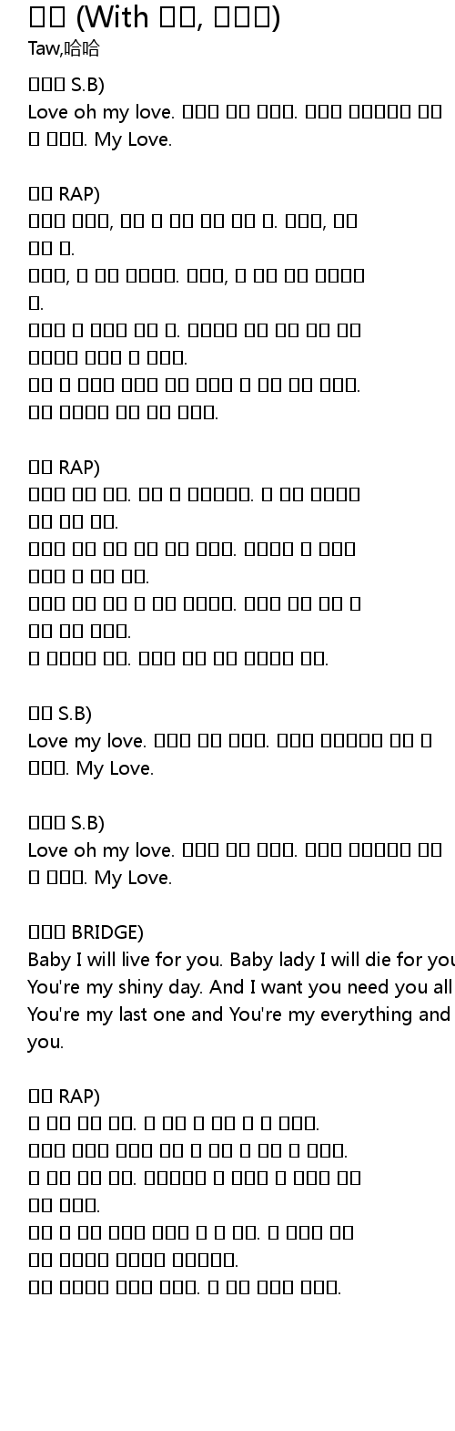 Love oh my love. 아직은 내가 작아요. 해줄게 사랑밖에는 다른 게 없네요. My Love.