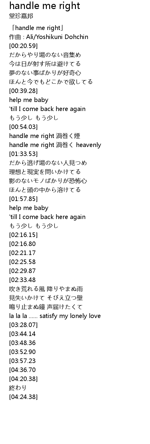 | [02:38.62][02:21.17] | handle me right 渦巻く heavenly |