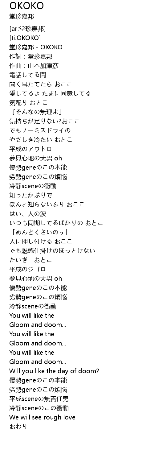 | [00:00.59] | 堂珍嘉邦 - OKOKO |