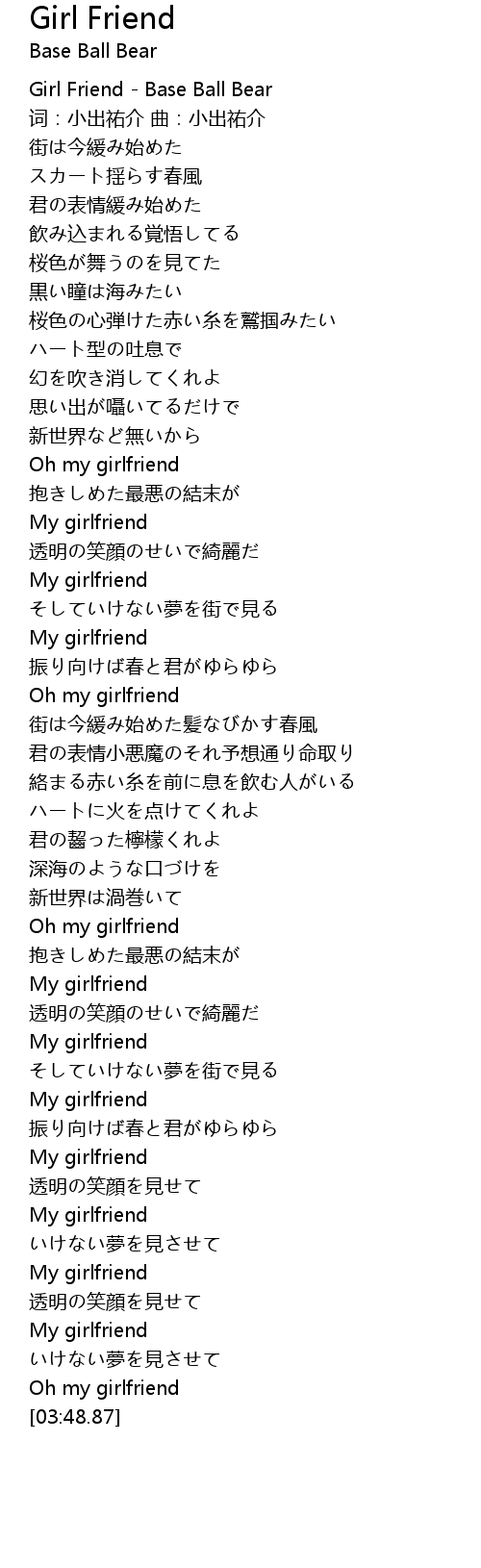 | [00:00.85] | Girl Friend Base Ball Bear |