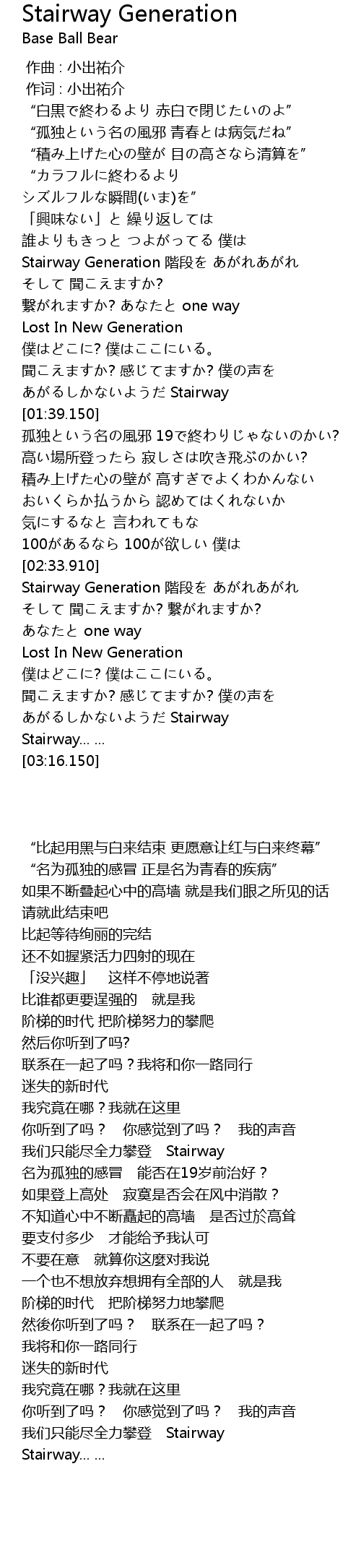 | [02:35.120] | Stairway Generation 階段を あがれあがれ |