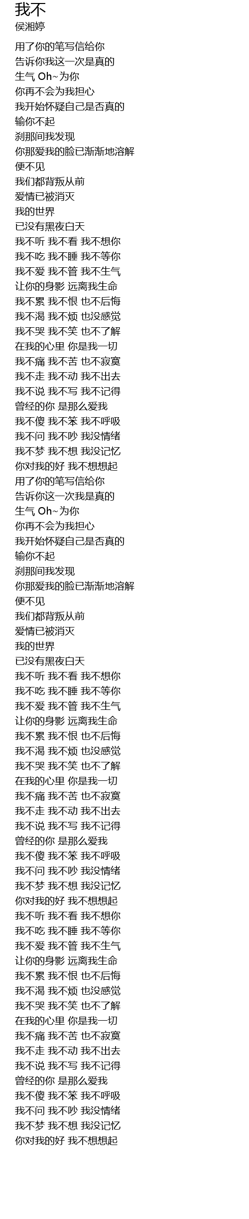 | [04:31.15] | 我不吃 我不睡 我不等你 |