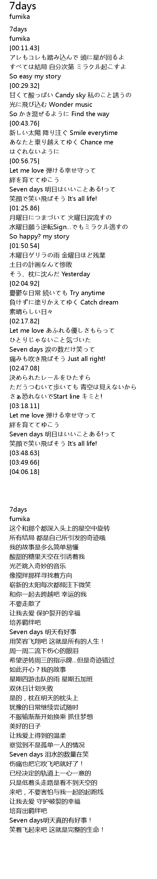 | [03:31.42] | Seven days 明日はいいことある!って |