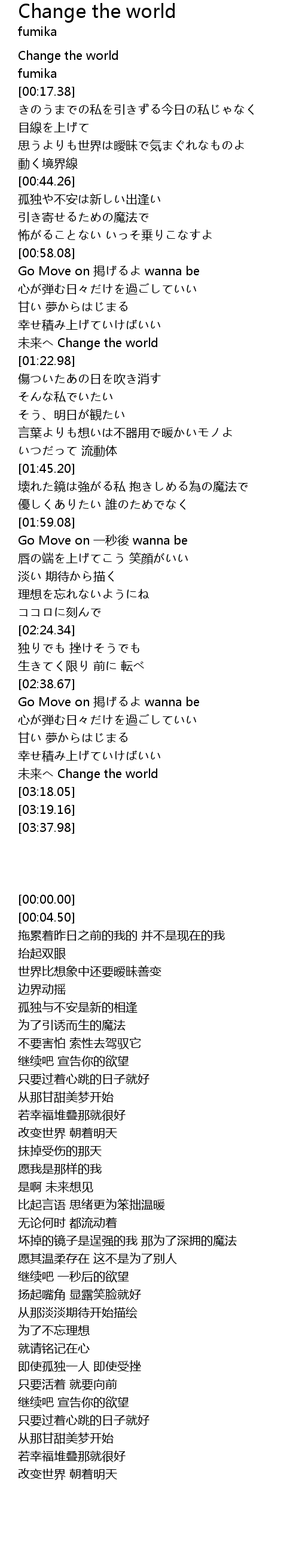 | [00:00.00] | Change the world |
