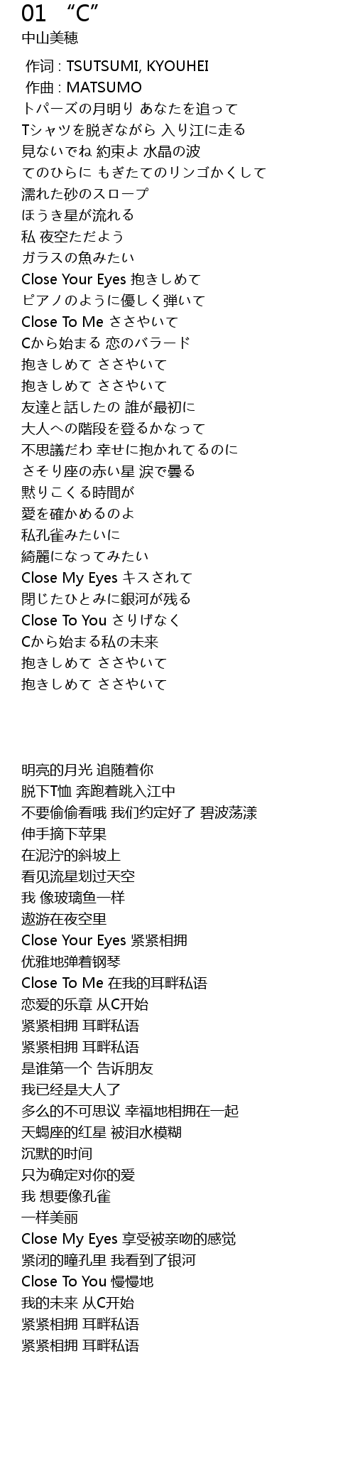 | [00:57.000] | Close Your Eyes 抱きしめて |