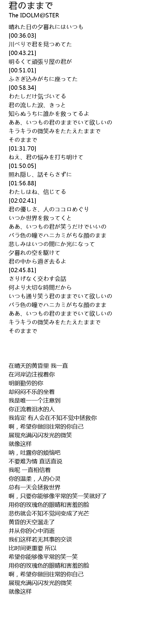 | [03:29.63] | ああ、いつもの君のままでいて欲しいの |