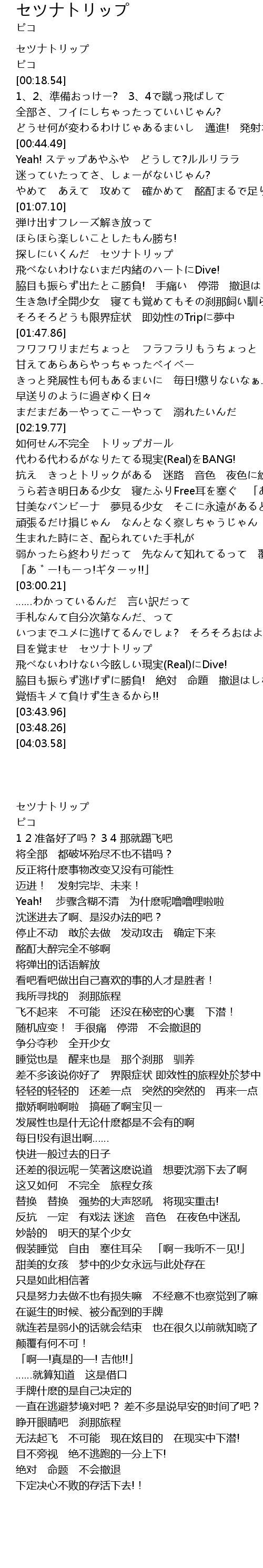 | [03:26.49] | 目を覚ませ セツナトリップ |
