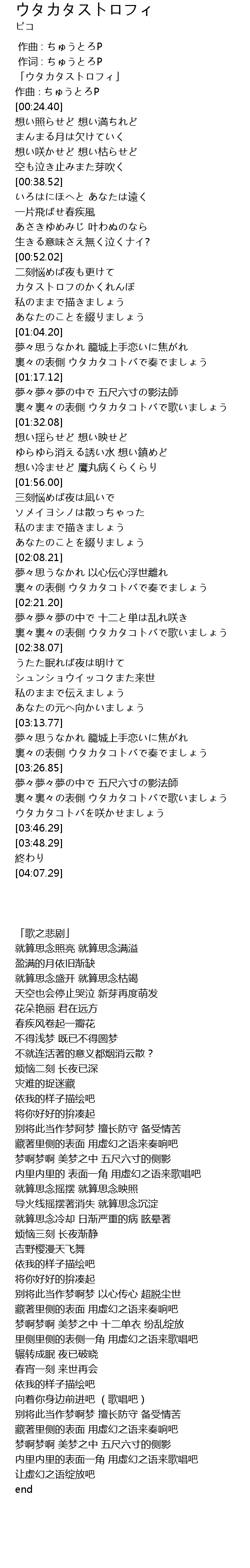| [00:00.40] | 「ウタカタストロフィ」 |