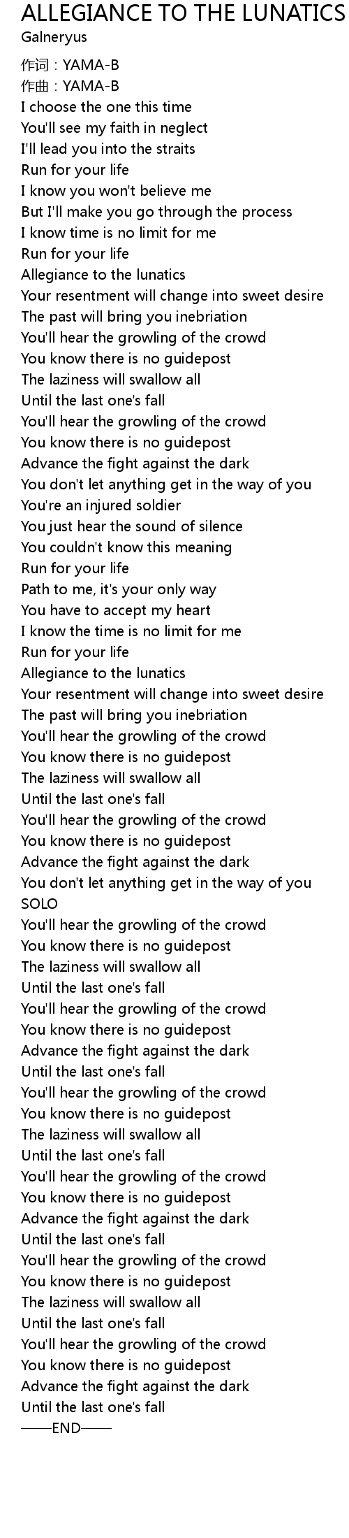 | 歌曲 | ALLEGIANCE TO THE LUNATICS |