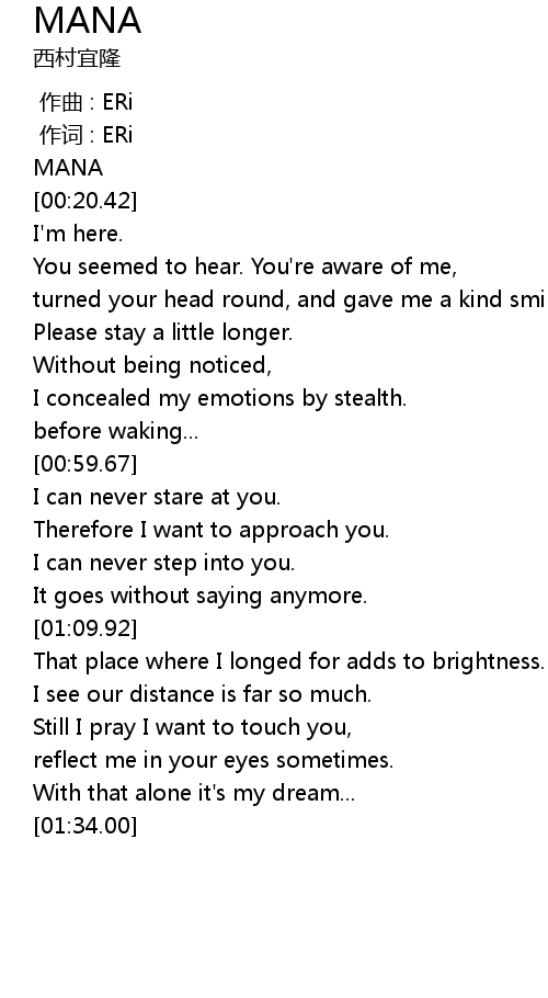 | [00:01.36] | MANA |