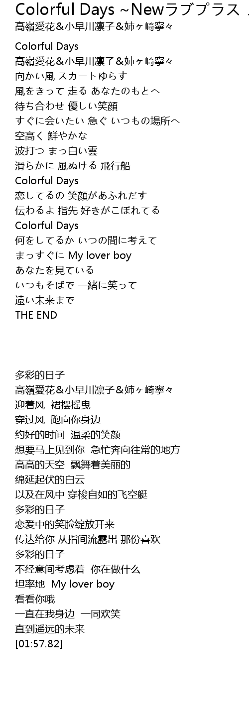 | 歌曲 | Colorful Days ~Newラブプラス メインテーマ~ |