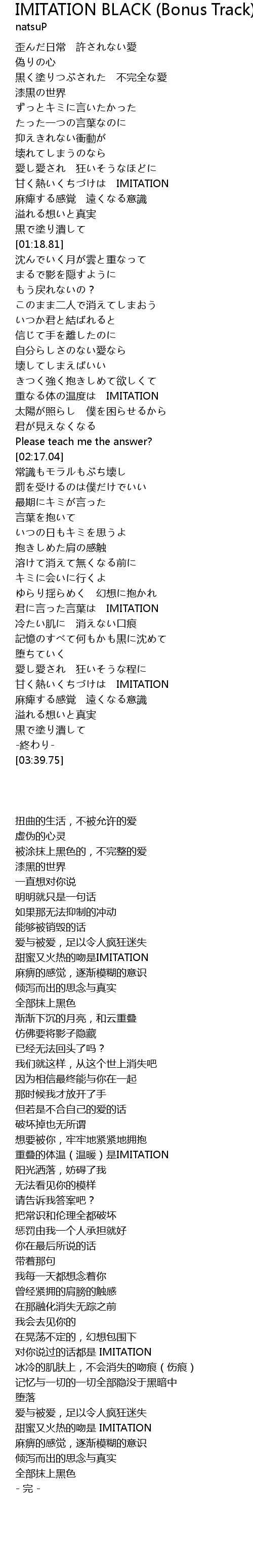 | [02:01.55] | 重なる体の温度は IMITATION |