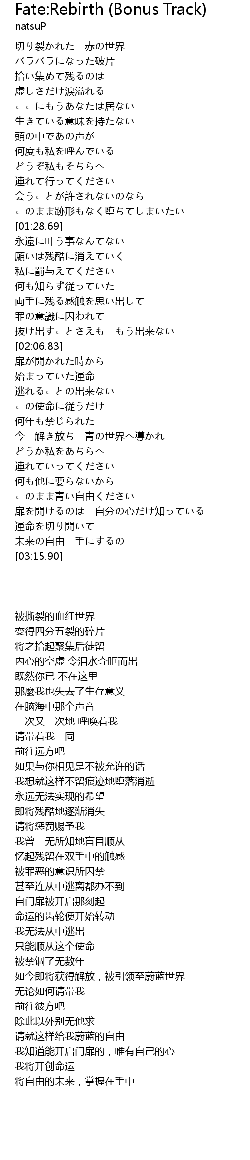 | 歌曲 | Fate:Rebirth (Bonus Track) |