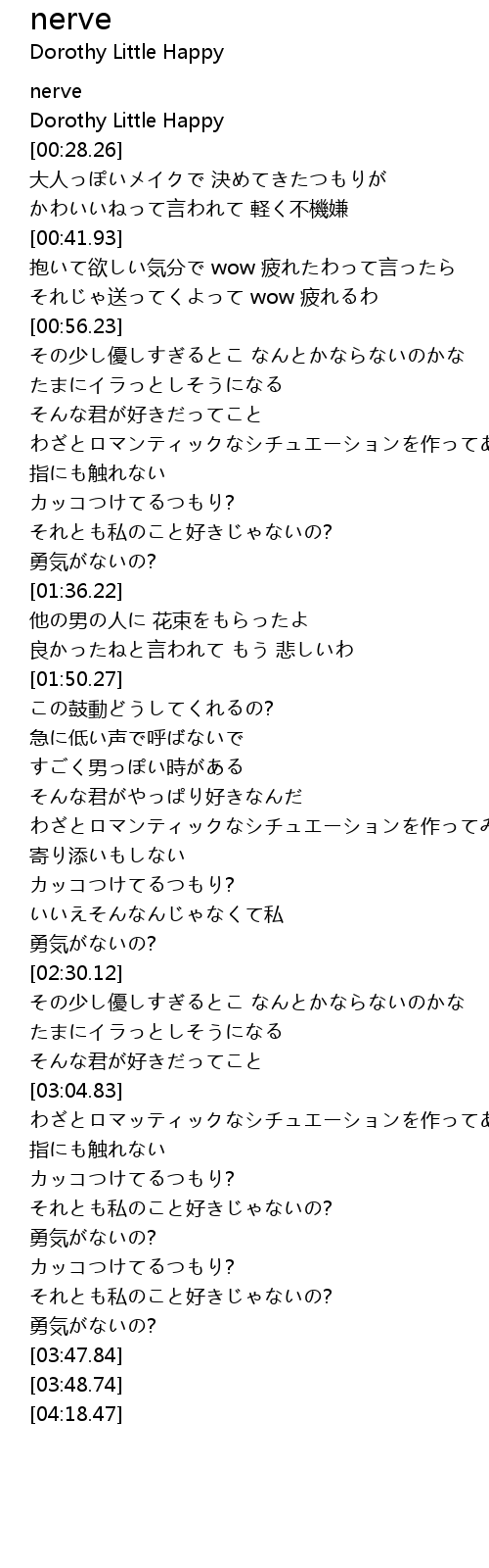 | [03:19.57] | カッコつけてるつもり? それとも私のこと好きじゃないの? |