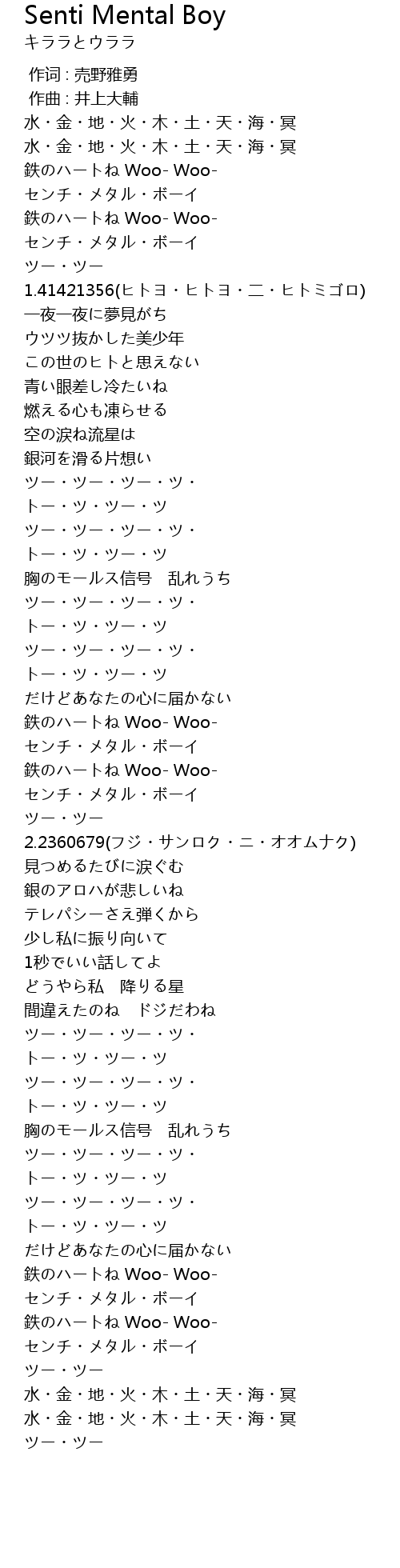 | [02:19.220] | 2.2360679(フジ・サンロク・ニ・オオムナク) |