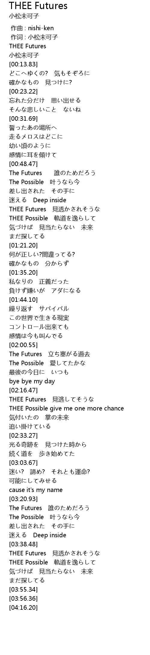 | [03:23.01] | The Futures 誰のためだろう |