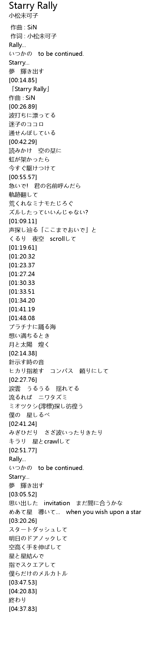 | [00:16.89] | 「Starry Rally」 |