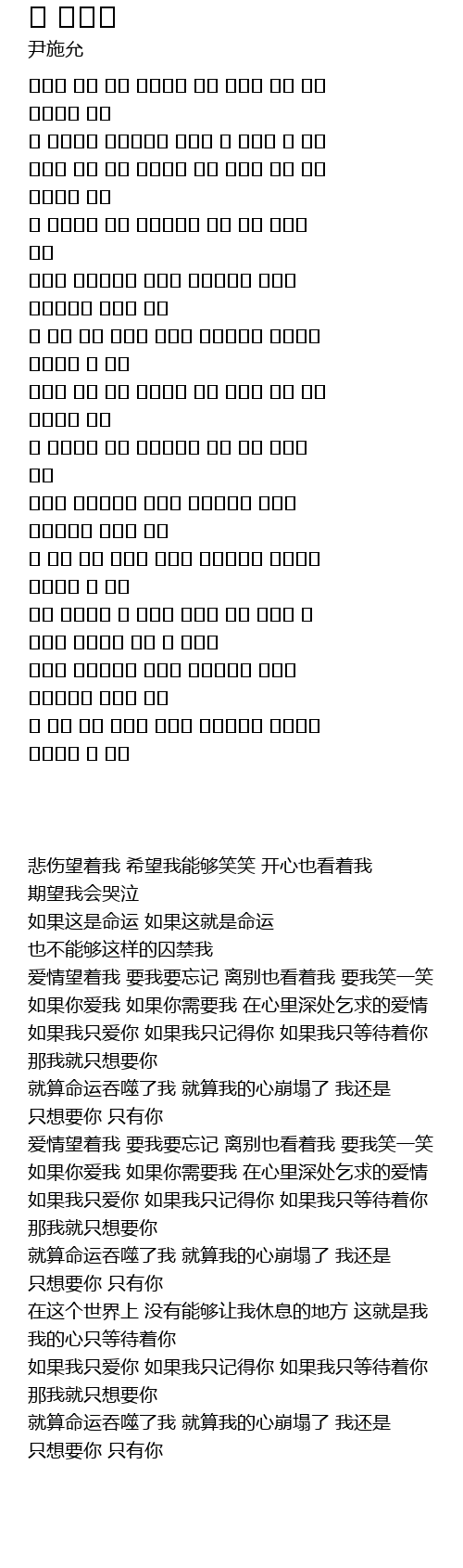 | [01:37.100] | 운 명이 나를 삼켜도 내가슴 무너진대도 너하나만 너하나만 난 원해 |