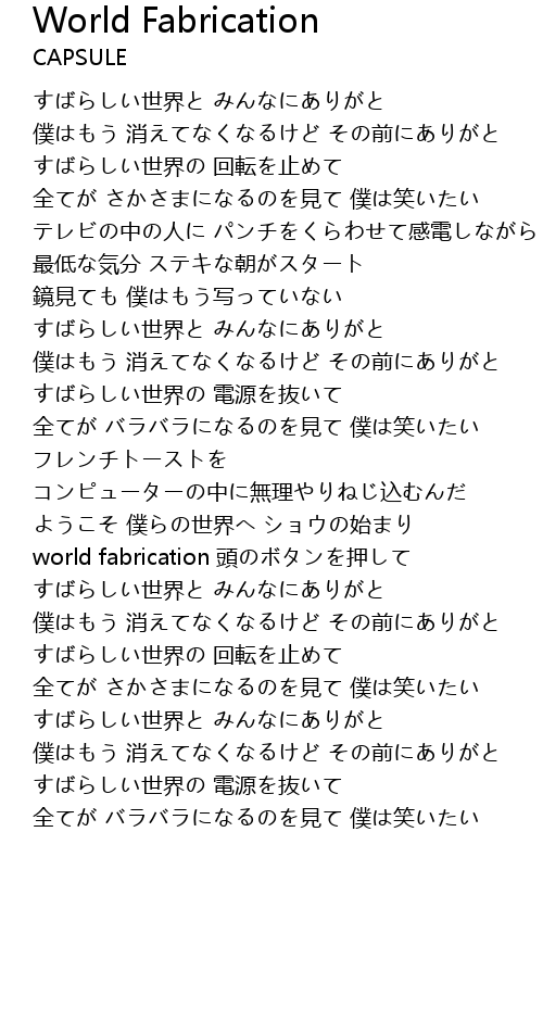 | 歌曲 | World Fabrication |