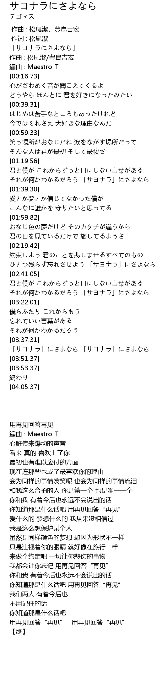 | [03:37.96] | 「サヨナラ」にさよなら 「サヨナラ」にさよなら |