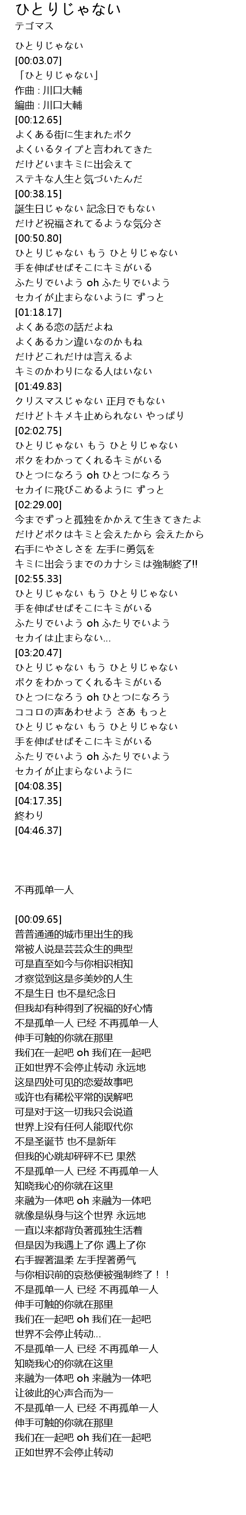 | [00:05.65] | 「ひとりじゃない」 |
