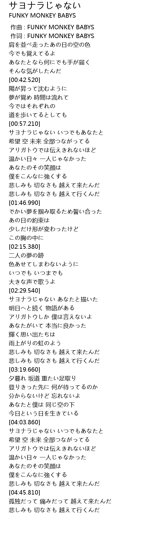 | [00:00.00] | 作曲 : FUNKY MONKEY BABYS |