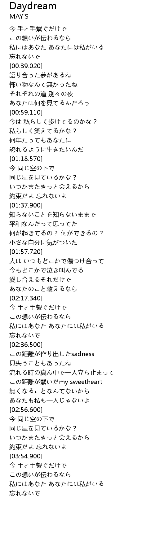 | [03:40.370] | 同じ星を見ているかな? |