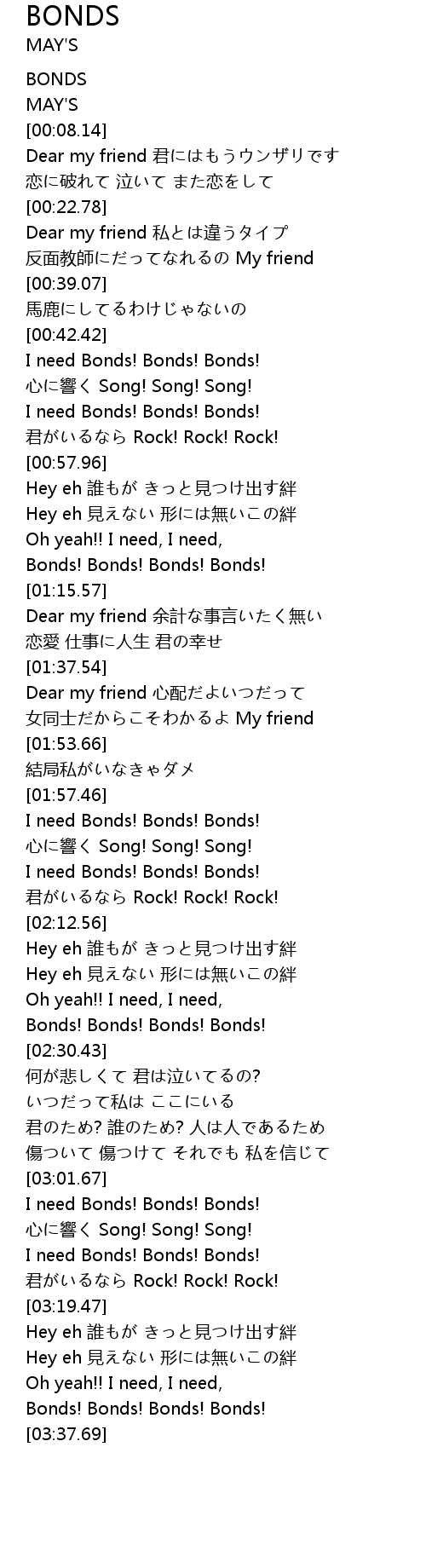 | [00:51.20] | I need Bonds! Bonds! Bonds! |