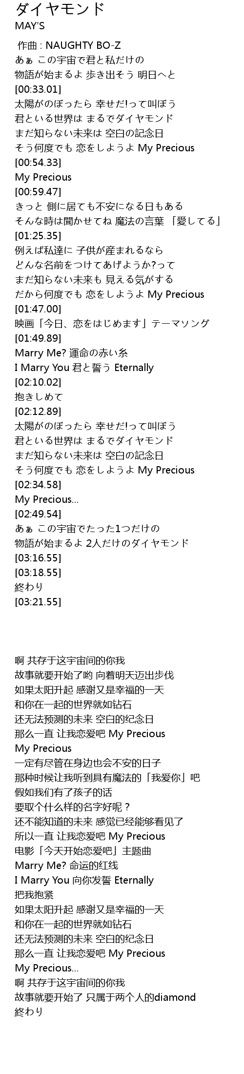 | [03:03.02] | 故事就要开始了 只属于两个人的diamond |