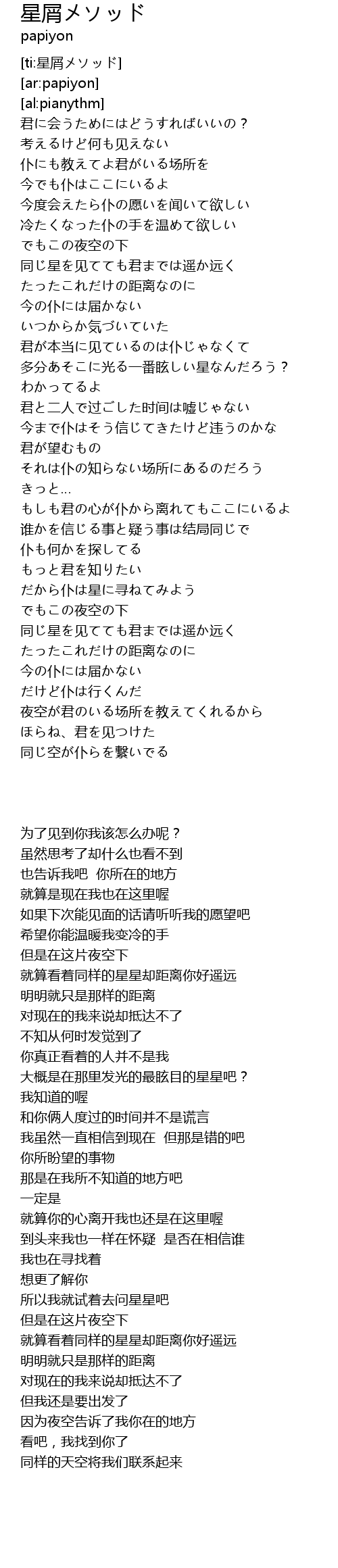 | [03:48.73] | 夜空が君のいる场所を教えてくれるから |