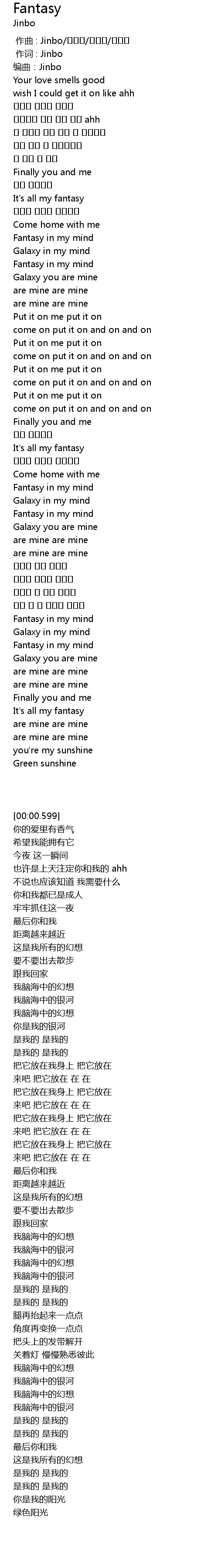 | [00:00.199] | 作词 : Jinbo |