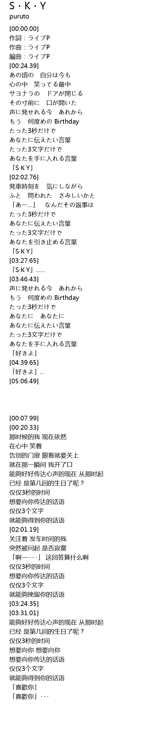 「S·K·Y」 |