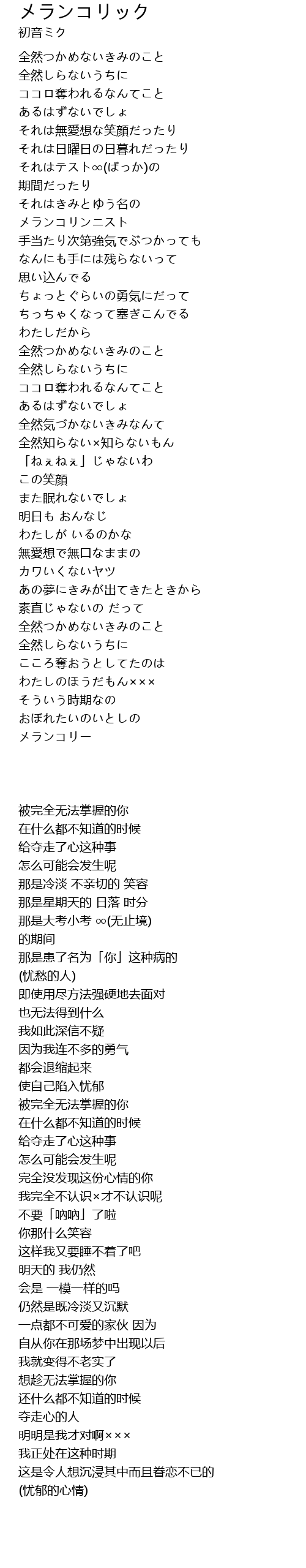 | 歌曲 | メランコリック |