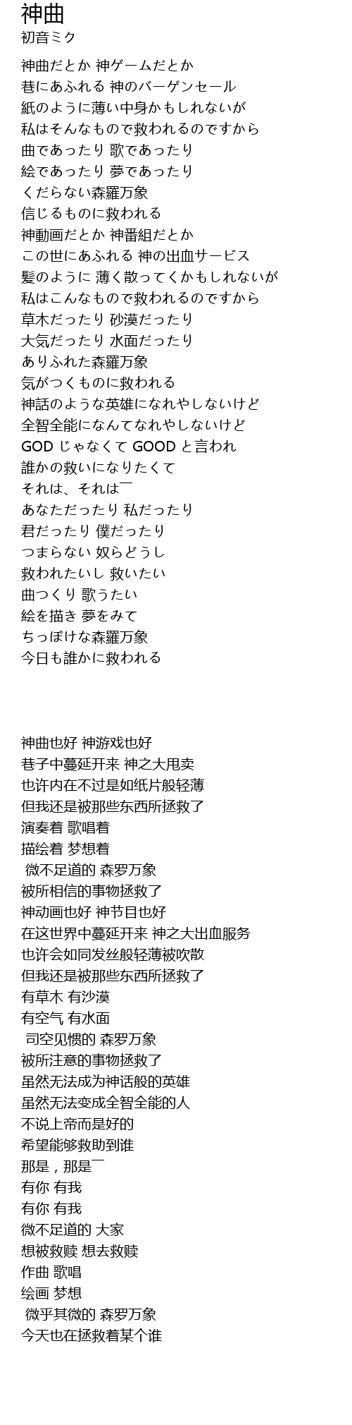 | 歌曲 | 神曲 |