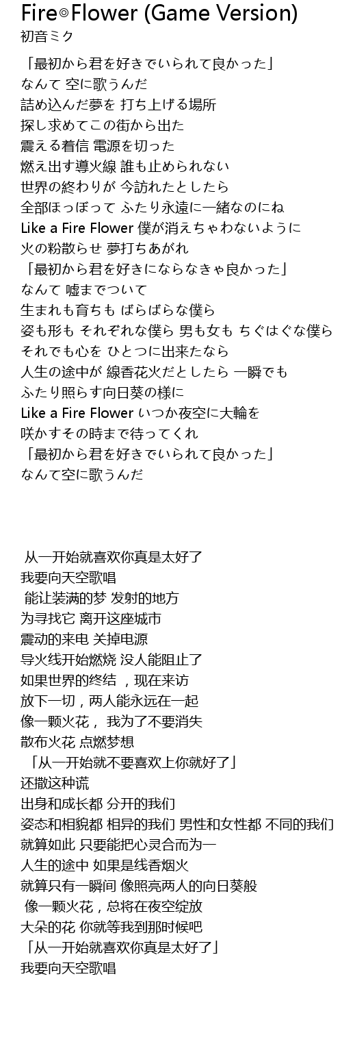 | [01:00.23] | Like a Fire Flower 僕が消えちゃわないように |