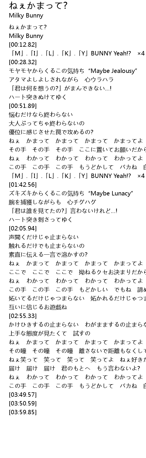 | [00:16.03] | M. I. L. K. Y BUNNY Yeah!? 4 |