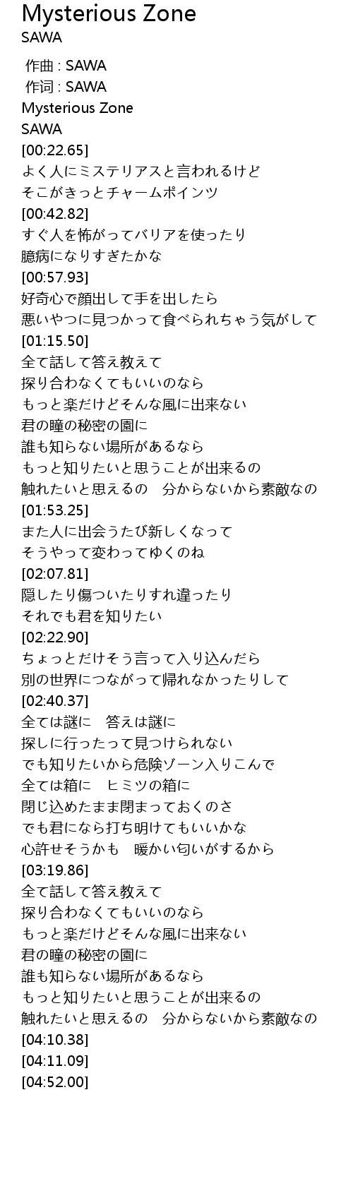 | [02:40.79] | 全ては謎に 答えは謎に |