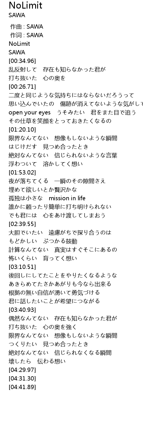 | [03:57.60] | 限界なんてない 想像もしないような瞬間 |