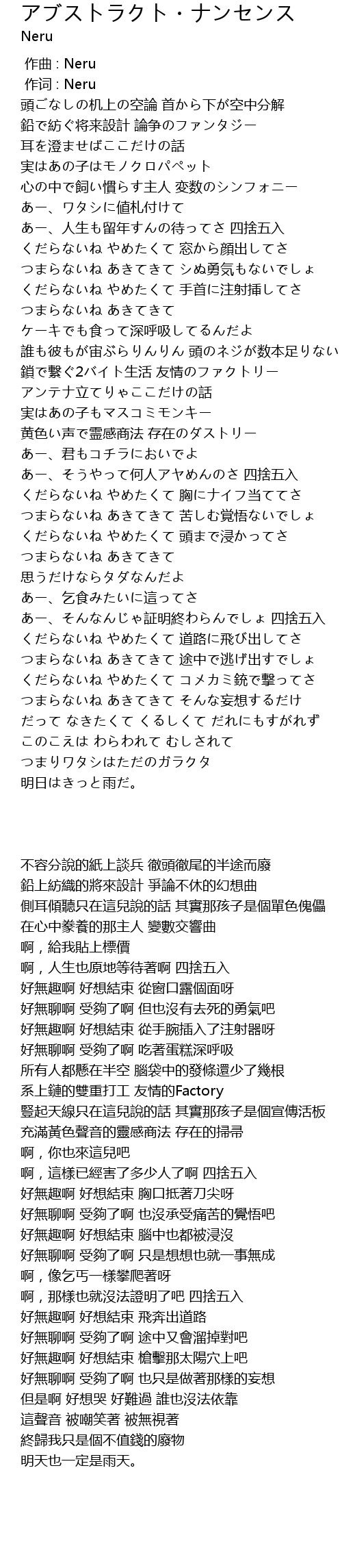 | [00:01.00] | 作词 : Neru |