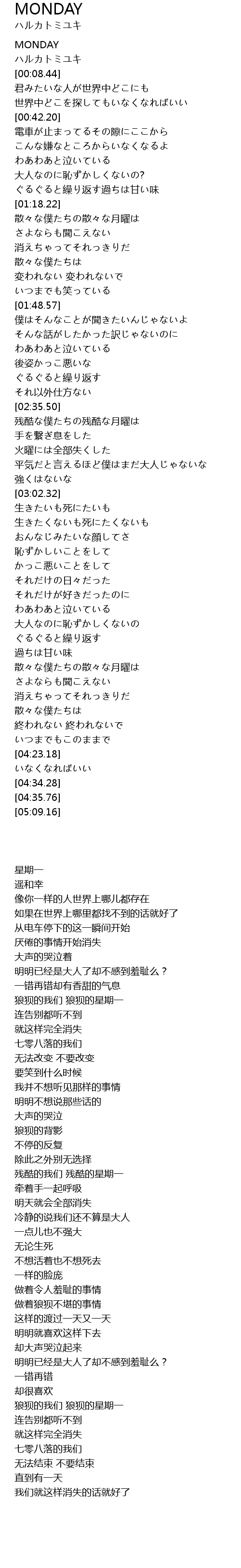 | [03:52.86] | 散々な僕たちの散々な月曜は |
