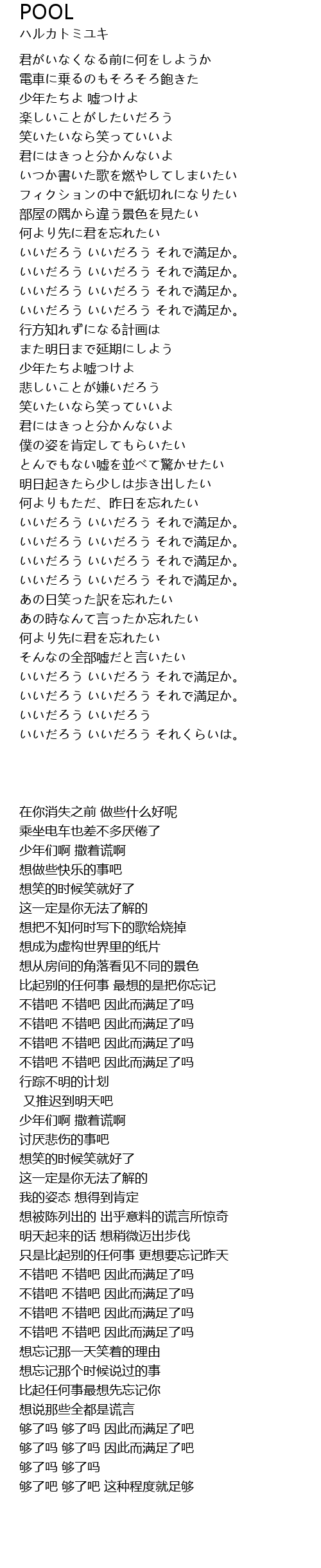 | 歌曲 | POOL |